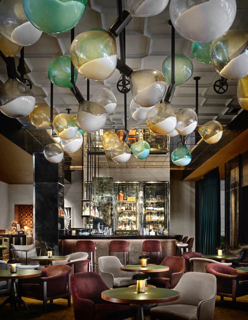 The space itself is a striking medley of world-class design elements, transporting guests to a different era with a seamless marriage of custom furnishings and sumptuous decor. WonderGlass manufactured and engineered the self-moving ceiling installation which was designed specifically to enhance the Dark Side Bar of the Rosewood Hotel in Hong Kong. WonderGlass was involved in this installation from the art direction to the engineering.