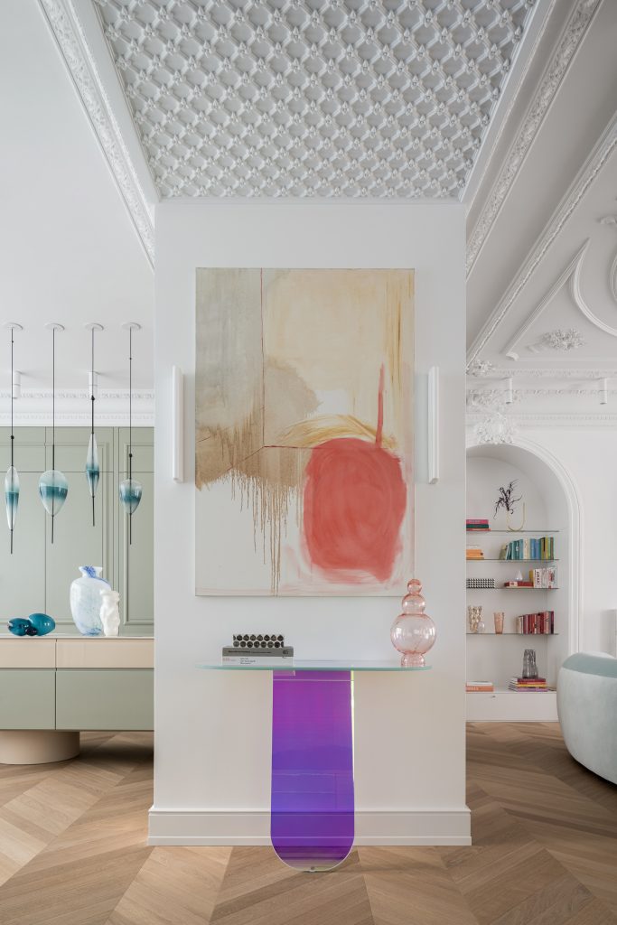 Paintings by Dorota Buczkowska work armoniously with artisanal touches and hidden combinations of forms and materials found in rugs, sofas, vases and lighting.