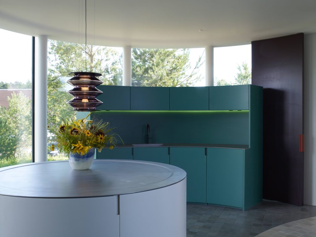 A Gesamtkunstwerk is a ‘total artwork’ that unites different forms of art, design, and craft to create a cohesive whole in which various elements seamlessly complement each other. The Triple Folly embodies this harmonic approach: working closely together from the onset, Thomas Demand and Caruso St John architects co-developed the interior’s defining features, including surfaces, chairs, tables, lamps, and even the door handles.